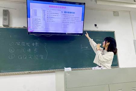 陈昕妤老师负责讲授新闻写作、新闻摄影与原创推文策划。陈昕妤老师为同学们讲解了新闻稿的基本构成和“倒金字塔”写作结构,指出在拍摄新闻照片时应突出新闻主体,画面中应包含必要的新闻信息,强调原创推文应提前做好详细的策划。