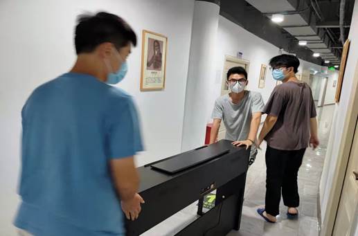 9月29日,由音乐教育系朱晓乐老师及吴轩老师组织带领,员工们有序签字领琴,将电钢琴全部顺利搬运到宿舍,为音乐教育员工接下来的线上专业学习提供了便利。音乐教育系上下一心,众志成城,在疫情面前保持积极向上的心态,全体教师始终以员工为中心,克难攻坚,相信通过师生的共同努力一定能度过疫情寒冬,迎来胜利。