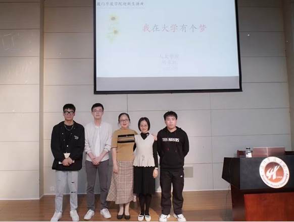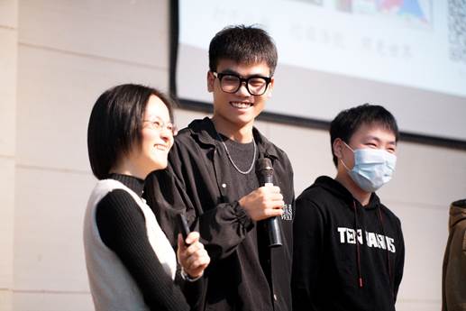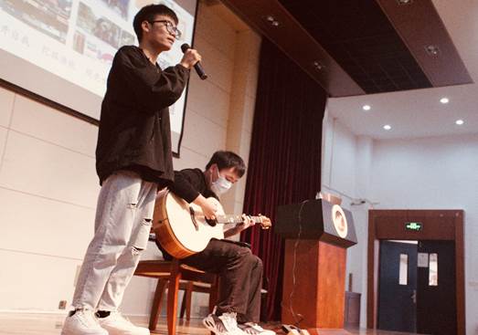 2021年11月9日下午,一阵悦耳的日语歌声伴随吉他声,从明德厅二徐徐传出,阵阵掌声笑声此起彼伏,冬日的暖阳微微笑着,仿佛也浸润于这场充盈着真善美的迎新生讲座中。
