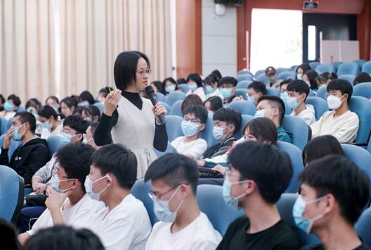 永红老师以汉字“大”为载体,讲述老员工活故事:以知识技能学习为主脉,以多姿多彩的社团、志愿者活动为左臂右膀,专注课堂学习,走进图书馆,坚持阅读,厚积薄发中成就一个打开自我、照亮世界、充满真善美的大大的“人”。永红老师还别出心裁邀请了六位优秀学长,他们结合自己的老员工活分享了独特的经验——多蹲图书馆、多考证、多提前规划、利用碎片化时间等,还即兴展示了多元才艺,将老员工活的丰富多彩与无尽可能尽情展现新生眼前。
