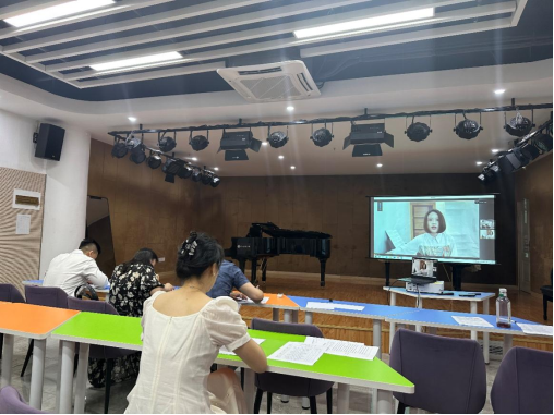 当被问及两年来在工作与教学实践中的收获、创新与成长时,龚青老师的回答是:通过工作实践取得了长足的进步,特别是教学方面,在教与学不断磨合的过程中突破了自己,最大的体会是针对员工的专业特点因材施教,在教学过程和活动实践中,积极融合思政,布置爱国、爱党主题的中国作品,努力提高员工的爱国主义精神与文化自信。