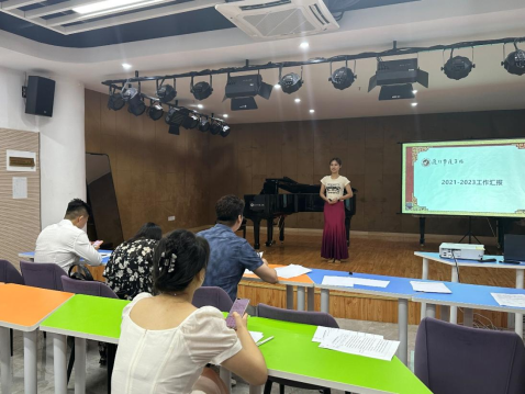 6月27日下午2:00,音乐教育系青年教师考核在文体中心如春厅进行。本次考核对象为2021年新进教师龚青、林宸、蔡欣莹、邹欣怡,由朱晓乐、吴轩、林芳彬、黄小玲四位老师担任考核评委。