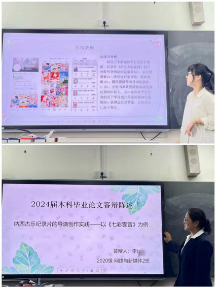 毕业设计答辩现场严谨有序,准毕业生们结合大学四年的专业知识展示了他们的运营成果和艺术创作能力,并回答答辩委员会提出的问题。答辩老师们认为2024届网媒准毕业生们在创作和运营过程中展示出了较好的创新能力和学科思维。同时,答辩老师们也提出了许多合理的建议,为毕设后续的改进指明了方向。