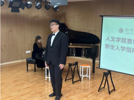 在见面会中,朱晓乐老师从专业介绍、课程以及培养方案几个方面向新生进行介绍。围绕音乐教育系的概况、教学条件和规划进行了详细的解说,帮助新生快速了解环境对音乐教育系建立基本的认知。随后由林芳彬老师和各课程组组长上台介绍了音乐教育系的专业课程设置和培养方案,帮助新生对大学四年发展进行规划。