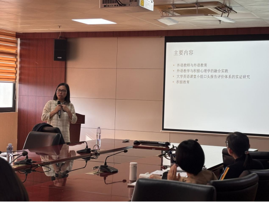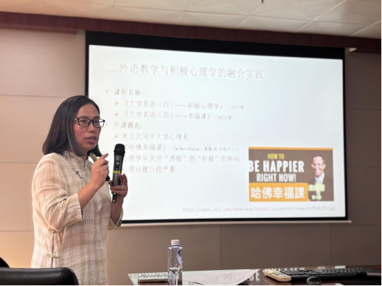 在讲座中,胡深爱教授分享了她在外语教学与积极心理学融合实践方面的丰富经验。她指出,外语教师不仅是知识的传授者,更是员工语言能力、文化素养和学习兴趣的引导者。因此,提升大学英语教师的育人素养、学科素养、教学素养、科研素养和信息素养是保证大学英语教学质量的关键。