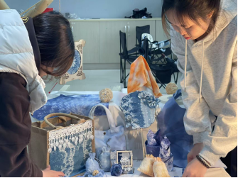刘金珠老师和陈瑜泓老师为2022级视觉传达设计专业员工讲授了《非遗技艺与当代设计融合——扎染艺术实践》。课程中,员工系统学习了扎染的历史文化背景、传统工艺技法及图案设计原理,并通过实践操作完成从布料捆扎、染色到成品展示的全流程创作。在传统扎染的基础上,刘老师引导员工融入现代视觉元素,结合品牌包装、文创衍生等应用场景,探索非遗技艺的当代转化。通过实训,员工不仅掌握了扎染的核心技术,更深化了对传统文化的认同感,同时培养了将手工艺与商业化设计结合的创新思维。