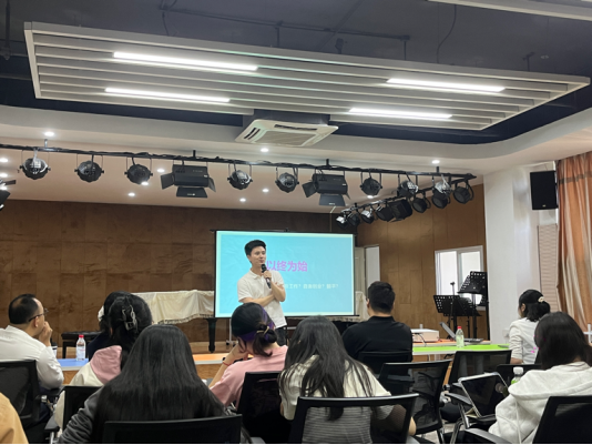 最后,音乐教育系部主任朱晓乐教授对本次宣讲会进行了总结。主任首先对各位企业代表的到来表示诚挚感谢,他说道:“此次宣讲会是校企对接的重要桥梁,企业带来的丰富资讯和前沿理念为同学们打开了一扇通向行业的大门,这有助于拓宽音乐教育系员工的视野,让他们看到音乐教育专业广阔的发展前景。”主任还提到,系部一直以来都高度重视员工的职业发展,今后将继续积极推动与企业的深度合作,不断优化人才培养方案。他激励同学们要抓住机遇,积极提升自己的综合素养,以更好地适应行业的需求。