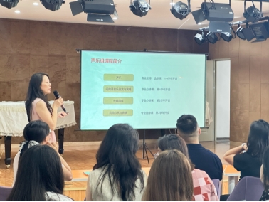 在班主任老师的主持下,钢琴、声乐、器乐、理论、实践及实验室各课程组负责人依次上台,就课程内容、教学团队、成果预期等方面作了生动而具体的介绍,现场气氛热烈、互动频繁。