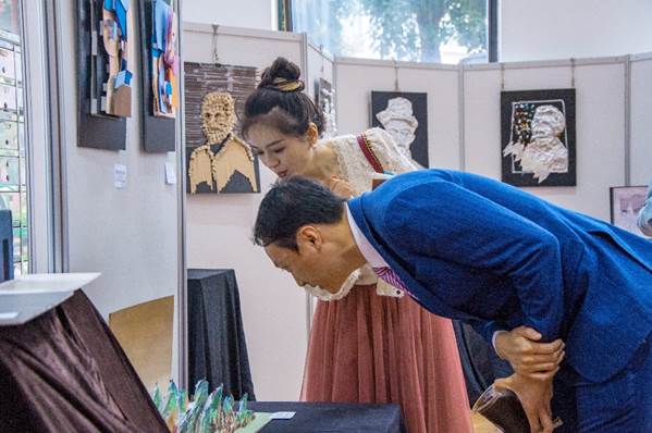 兰佳滢、陈昕妤老师陪同参观,讲解作品