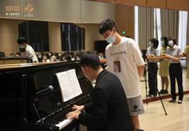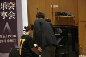 来自19级的林嘉静同学弹奏了李斯特改编《舒伯特维也纳之夜第六首》。林东方表示,音阶琶音在练琴过程中是至关重要的。平时练琴中不光要练习曲子,更是要注重基本的手指哈农练习。“大学期间,员工是以自主学习、自我提高为主,老师起帮衬提高的作用”,林东方表示,个人的修行对水平的提高至关重要。