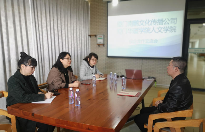 2月21日下午,厦门南鹏文化传播有限公司总经理韩涛来bevictor伟德开展校企合作洽谈。公司经理盛映红和创意系相关同志参加洽谈会。洽谈会上,盛经理介绍了公司在开展应用型人才培养、专业设置、产教融通、工匠文化等方面工作开展情况。