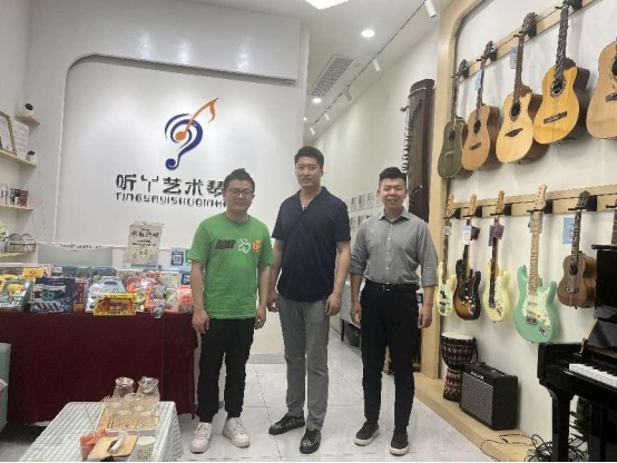 在听丫艺术中心总经理张伟鹏的陪同下,朱老师一行先后参观了琴房、录音工作室、活动中心等日常工作区域,就员工专业技能提升、综合素质培养、专业课程设置等方面进行了深入探讨。双方就人才培养,实践基地建设等方面达成一致合作意向。