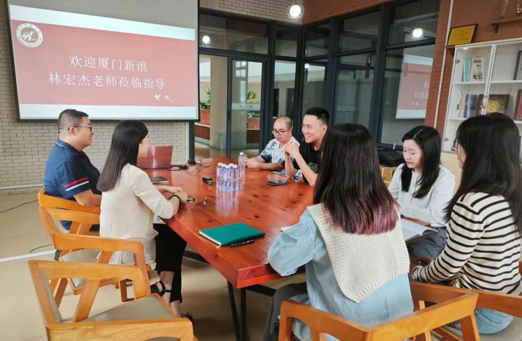 近日,厦门新浪林宏杰老师一行走进网络与新媒体专业。双方就如何加强校企合作为员工提供实践平台,促进专业教学进行项目式驱动式改革,实现多方共赢的局面展开具体项目的讨论。