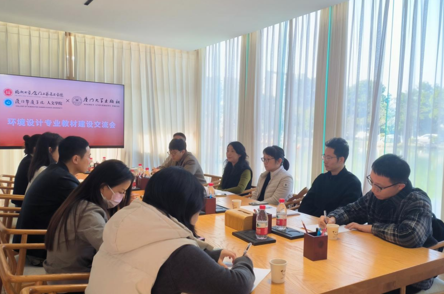 2025年1月3日,伟德国际体育官网环境设计专业受邀到福州大学厦门工艺美术公司参加环境设计专业教材建设交流会。交流会期间与福州大学厦门工艺美术公司环境设计系、厦门大学出版社的相关专业教师进行研讨。会议由福州大学厦门工艺美术公司环境艺术设计系主任梁青老师主持。厦门大学出版社教材事业部主任张佐群和环境设计专业老师们进行了环境设计教材撰写方向、内容、信息化建设等交流。同时参会教师们对教材撰写进行经验分享、提出自己的观点和问题。