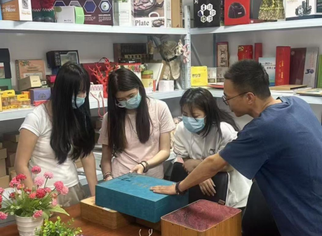 23视觉传达设计员工与琪昕印刷设计总监进行包装交流