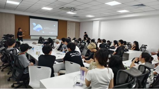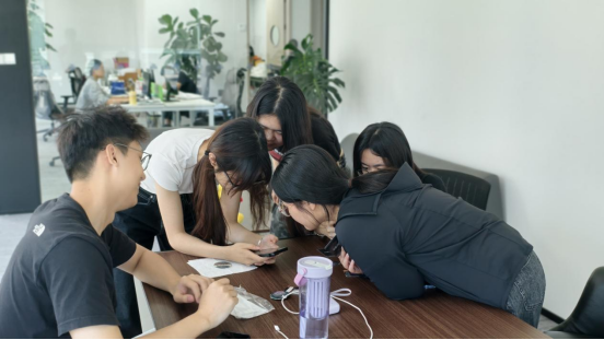 厦门竞游在线教育科技有限公司总经理章淳和助教老师向员工介绍了谷子项目的相关信息、此类型信息流短视频的创作要点等,员工认真倾听记录笔记,后续现场实践进行短视频创作。网媒员工积极参与,大胆尝试,发挥创意用镜头展示产品。最后,企业人员与本课程任课教师共同对员工的实践进行总结,提出改进意见,同时鼓励网媒员工多参与多积累。