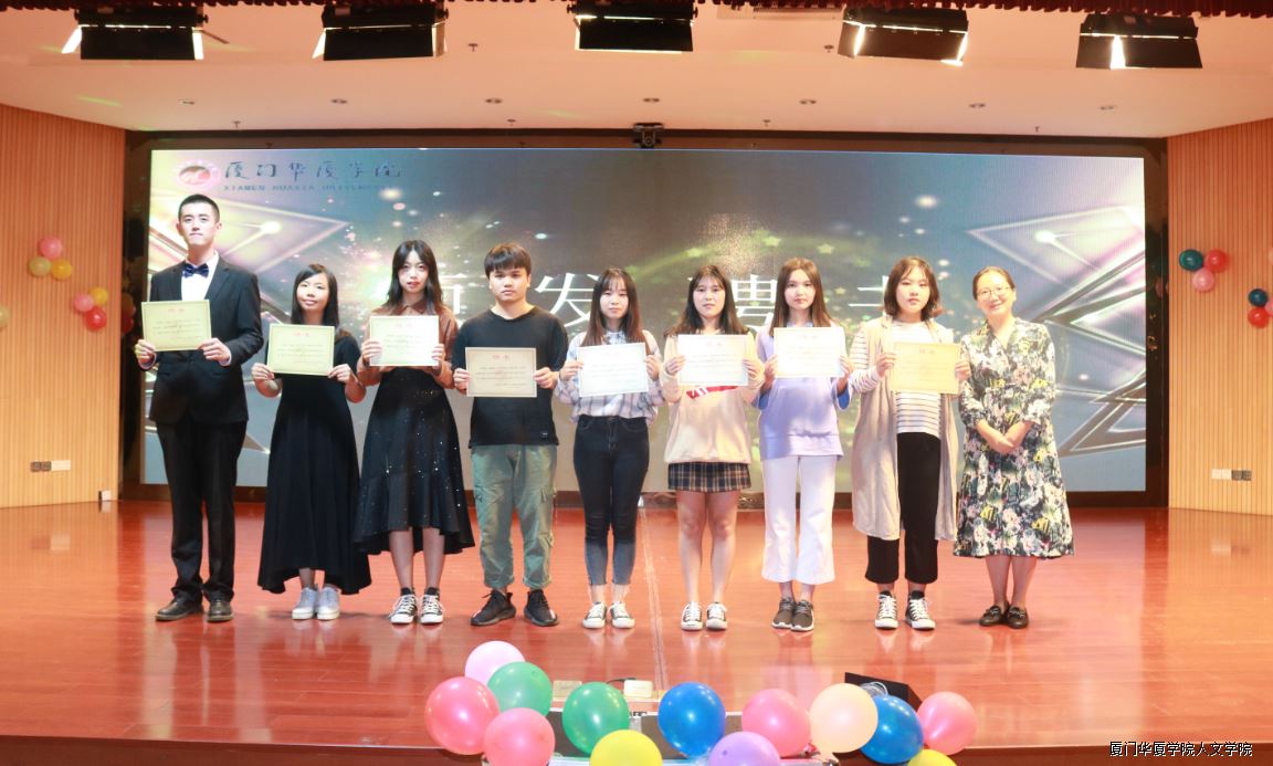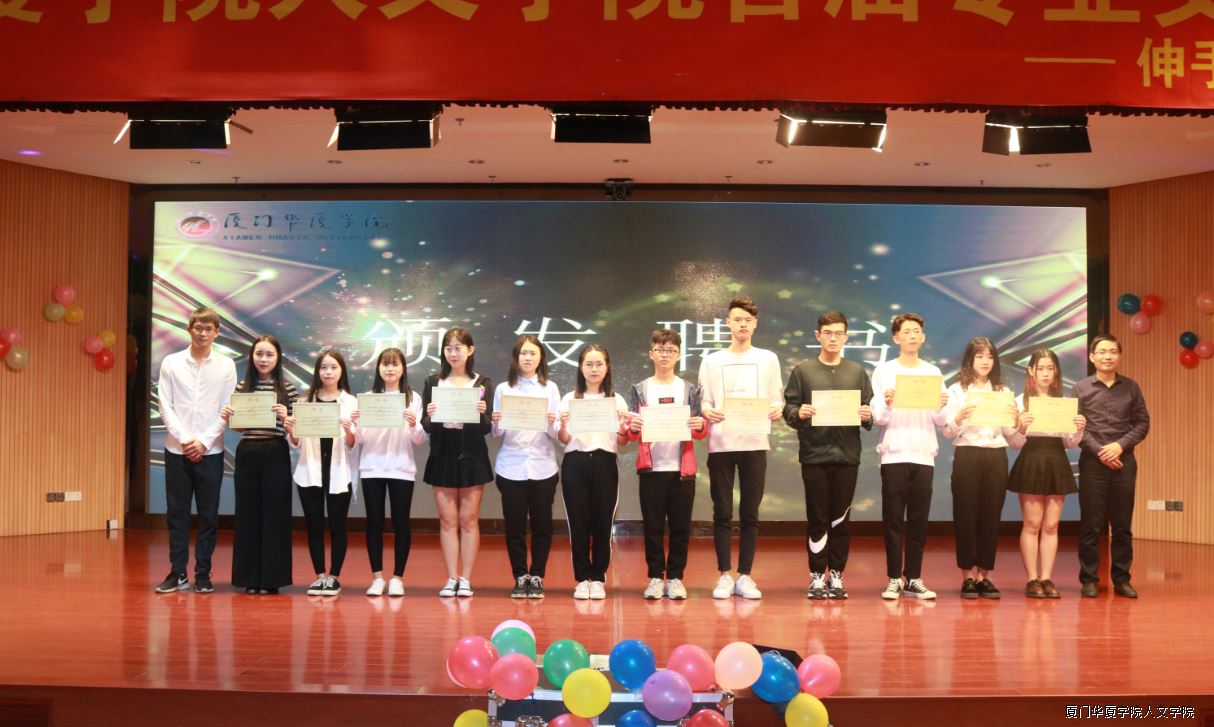 在晚会开始前,首先对公司班级助理、辅导员助理、党建助理颁发了聘书。随后,晚会在来自18级网络与新媒体专业带来的《华厦新闻联播》中拉开帷幕,专业的播报,辅以滑稽的语言,让观众对网络与新媒体专业有了一个形象的认知。18级艺术教育专业带来的四人舞《裙角飞扬》、舞蹈串烧《热爱》,艺术歌曲联唱、合唱《厦门亲像一首歌》,动感的舞姿,跳跃的音符,展现了艺术教育专业的无穷魅力。1718级数字媒体艺术专业的原创设计服装T台秀《Raspberry》,18级数字媒体艺术专业的默剧《美术生的故事》, 16级数字媒体艺术专业动画、视频作品展示,用艺术手段诠释了数字媒体艺术专业师生的创新、创意水平。17级商务英语专业的英文朗诵《琵琶行》、英语配音《小猪佩奇》, 1718级商务英语专业歌曲串烧《Guys Cheer》,展示了商务英语专业员工扎实的英语专业功底。公司员工会的舞蹈串烧《隔壁的泰山》、《学猫叫》,为大一学弟学妹们带来别样的精彩和感触。整场晚会精彩不断、高潮迭起。