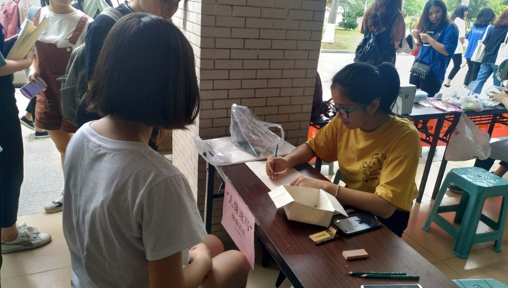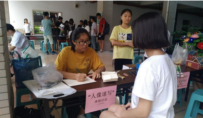 现场气氛活跃,有口腔健康普查,DIY曲奇,笔记本软件维护,血压测量,南普陀勤“公”助学项目展,现场人像速写等活动。我系利用专业知识进行现场快速人像速写,同学们跃跃欲试,我系志愿者们用自己的专业认真的给前来体验的同学进行绘画,希望能够给体验者一个良好的感受。