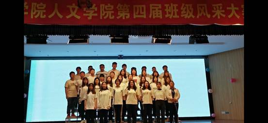 (班级风采大赛上的17商务英语本科2班《歌舞展示》)