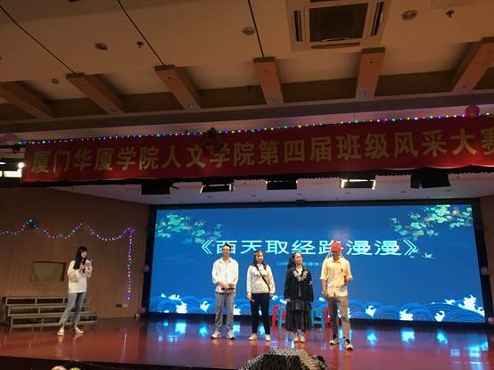 (班级风采大赛上的18网络与新媒体2班文明礼仪展演《西天取经路漫漫》)