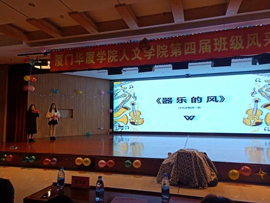 (班级风采大赛上的18艺术教育1班创意展示《器乐的风》)