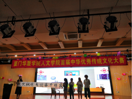 大赛由一段古典舞蹈《书简》拉开帷幕,两位舞者以优美的舞姿给现场增添了一丝古韵。紧接着六支队伍的相继亮相点燃现场,本场比赛分为四轮,第一轮抽取偏旁部首写汉字环节,“超能陆战队”引发了全场的欢呼,他们快速而又熟练地根据偏旁写出了对应汉字,充分展现了他们丰厚的汉字文化功底。在第二轮的古诗句车轮答题环节,收集了许多党的十八大以来习近平总书记援古证今的诗句,各个队伍代表按顺序回答诗句,本环节考验了选手们对汉语言文字、中华诗词的熟悉程度,面对浩如烟海的古诗句,选手们也丝毫没有慌乱,他们应对自如,其中,“大家都队”在本环节展现出了过人的反应速度与丰富的文化知识储备,连得数分,以出色的表现赢得了现场观众们的阵阵掌声,也为自己的队伍赢得了优势。第三轮你画我猜写成语环节,考验的是选手之间的默契,面对各种各样难度的成语,选手们使出了浑身解数,用丰富的肢体语言建立起了和队友之间默契的桥梁。在前三轮激烈的角逐之后,艺术教育专业的同学的合唱《但愿人长久》节目再一次给同学们带来一场充满古风的听觉盛宴,选手们也似乎忘记了刚才比赛的紧张气氛,都陶醉于优美的歌声中,一曲过后,第四轮集体展演也正式开始了,参赛队伍都通过赛前的充分准备,分别用自己独特的方式将他们对优秀传统文化的理解展现得淋漓尽致,“改革春风吹满地财二人们真争气队”选用历史上“苏武牧羊”的故事,用生动的表演以及幽默却又不失尊重历史的语言,将苏武的精神展现给观众们;“对对对队”以红豆为线索描述了一对恋人由默默爱恋到分离而互相思念的故事,进一步讲解了红豆在我国古代的相思、祈福、爱情等众多寓意;六支队伍都奇思妙想,魅力尽显。