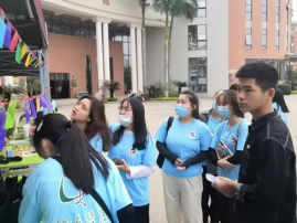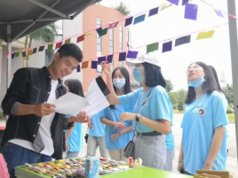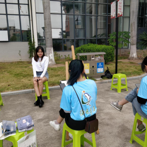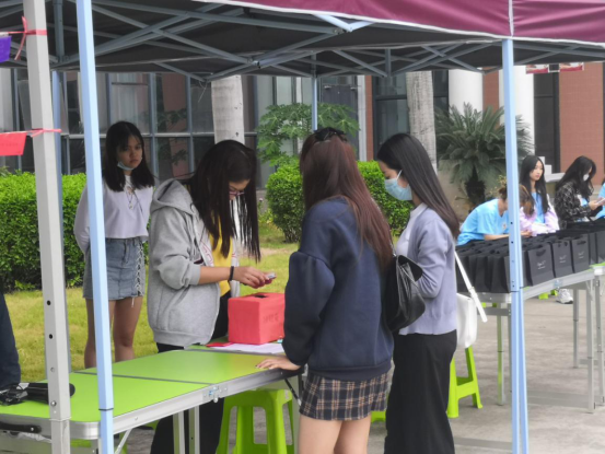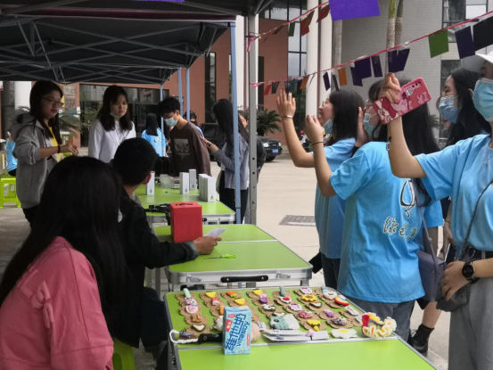 为宣扬勤俭朴素的生活作风,展现人文学子的创意创新精神与动手实践能力,同学们利用自己的专业技能进行手工创作,将自制的包包与挂饰摆放在摊位上进行售卖,从中也展现了绿色环保的理念。