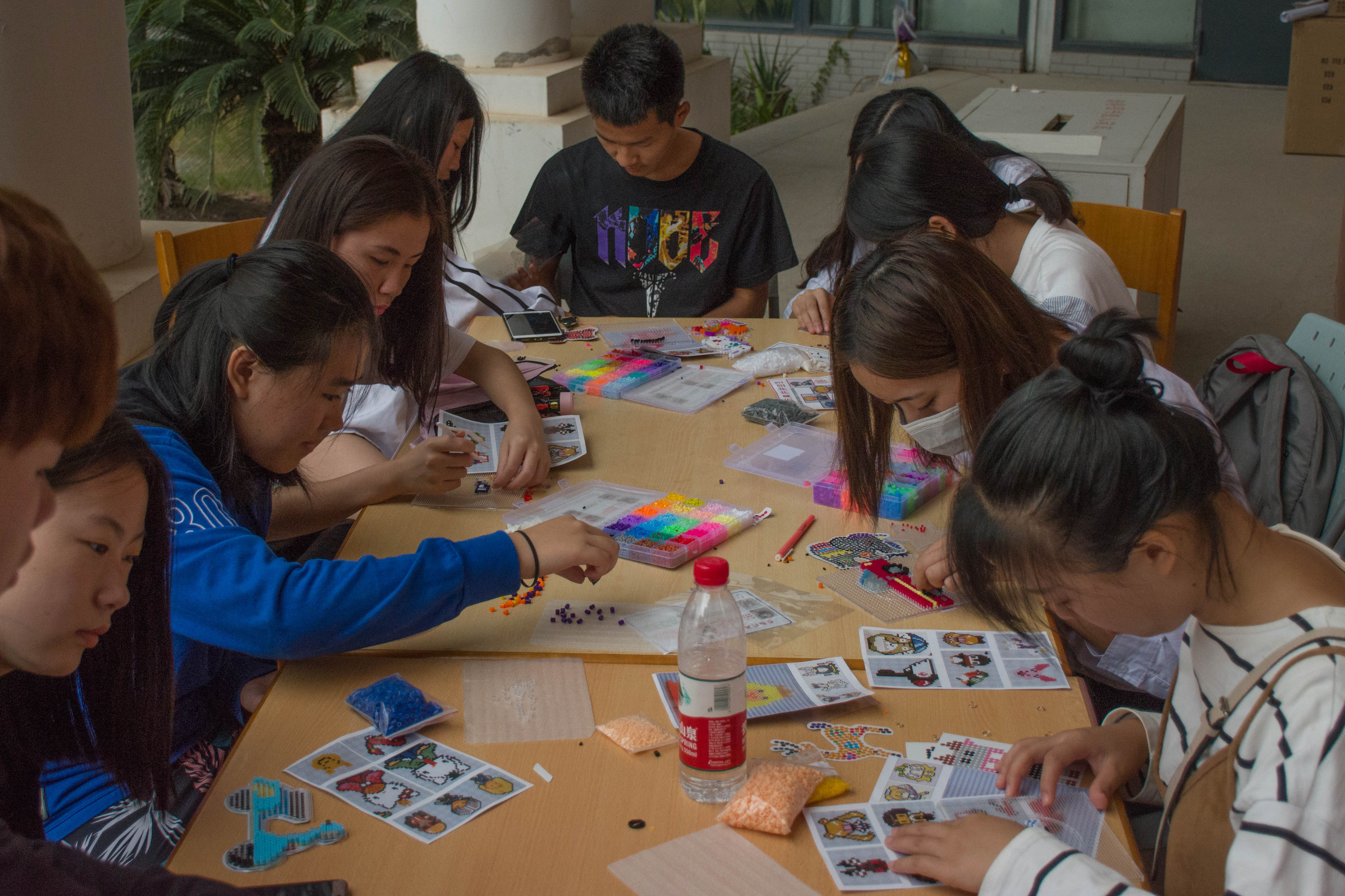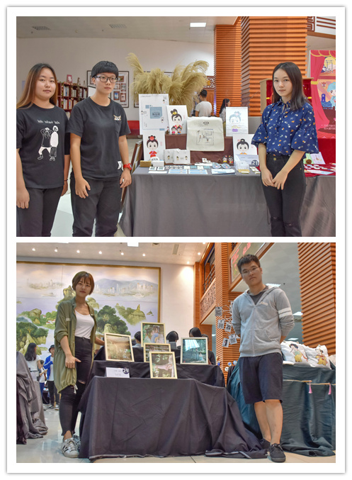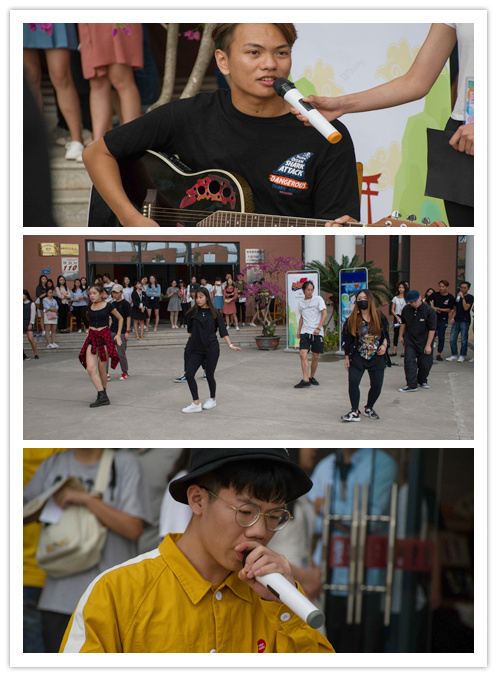 展出当天在图书馆门口,由公司的同学们进行助兴表演暨开幕式。现场表演有:连洪涛同学的吉他弹唱《南山的斑马》、黄鑫宏的嘻哈说唱表演《中二病》、街舞社的动感街舞表演。展出期间还有现场互动环节:拼豆豆游戏,发挥各位参展人员的拼图兴趣,自己制作完成的作品可带走留作纪念。