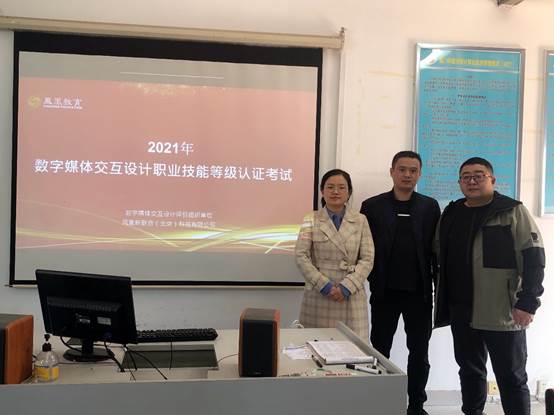 为了贯彻落实“1+X”证书制度试点工作,数字媒体艺术专业教师经过充分调研,选择了与数字媒体艺术专业密切相关的数字媒体交互设计证书,并于2020年6月,获批建设教育部“1+X“证书制度试点项目—”数字媒体交互设计职业技能等级证书(高级)“。2020年10月,选派专业教师赴西安进行团队培训。2021年4月,获批数字媒体交互设计职业技能等级证书(高级)考核站点。证书的培训内容与数字媒体艺术专业的培养方案相契合,并将证书培训融入集中性实践教学环节,对项目的推进有着重要意义。2021年10月,员工进入本轮证书考试的备考阶段,由专业老师在线组织报名和培训答疑工作,多方面确保员工顺利通过证书考试。