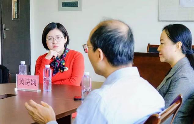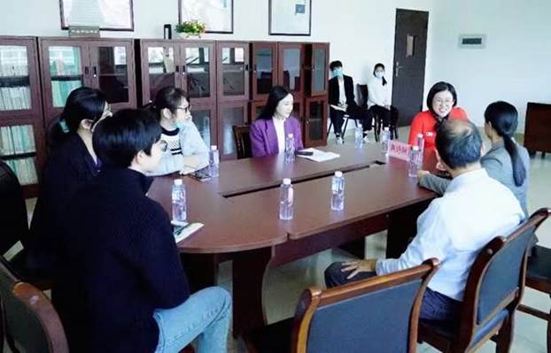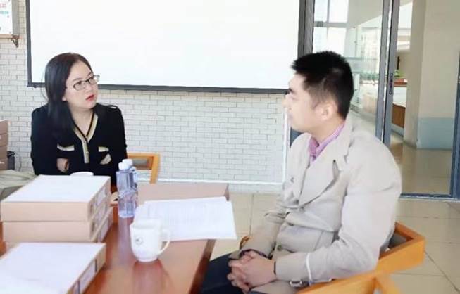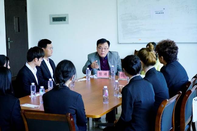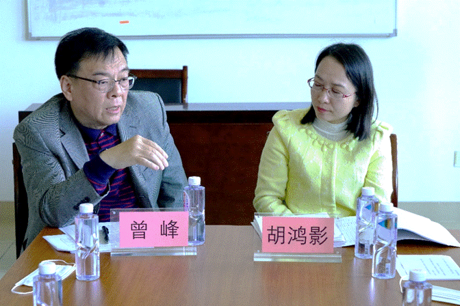 (曾峰经理与胡鸿影老师出席员工座谈会)