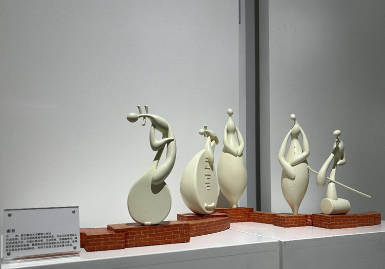 雕塑展区展示的是数字媒体艺术雕塑工作坊的作品,包括《时刻准备着》、《乐系列之——吹拉弹唱》、《南音》等优秀雕塑作品。这些作品均立足于我国优秀传统文化,旨在通过雕塑创作促进传统文化的传承与发展。