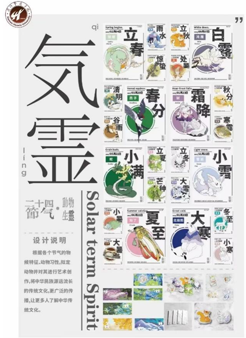 视觉传达设计作品展示区,作品包含VI设计、文创设计等内容。其中,作品《二十四节气》同时获得了第15届中国老员工计算机设计大赛福建省赛二等奖,国赛三等奖。员工们将自己的专业技能与创新思想进行了巧妙的融合,创作出的作品也展示出应用型人才培养的丰富成果。