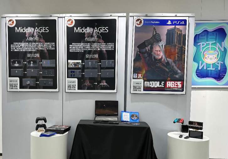 交互展区主要展示的是游戏等数字作品,借助新媒体平台,融入人机互动设计等交互体验,可以通过扫码观看动态数字作品。展区中的作品分别获得了中国好创意、NCDA艺术设计大赛、计算机设计大赛等比赛的各级奖项。