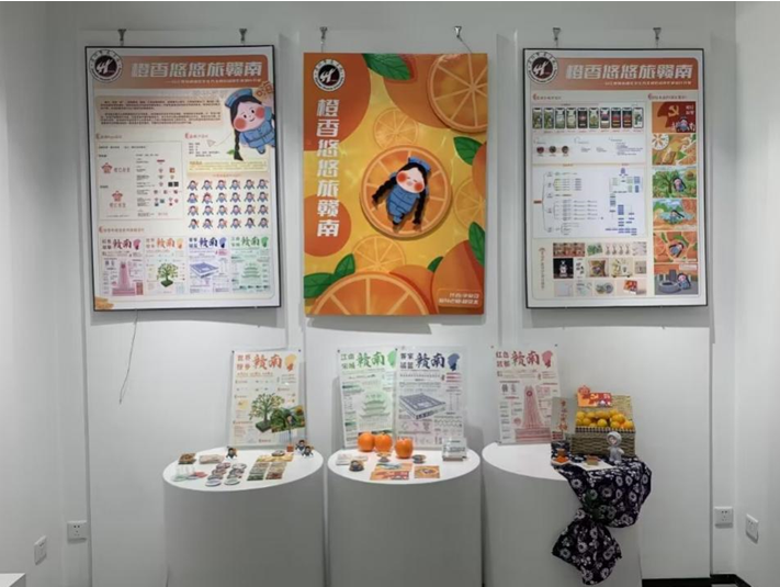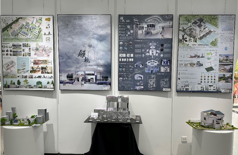环境设计专业的员工获奖作品展示区,作品包含了适老化空间,绿色人居等内容。其中,作品《领航》获得了全国高校数字艺术设计大赛(NCDA)国赛三等奖。