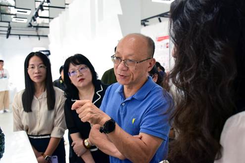 展览期间,南鹏集团总裁、厦门市南鹏慈善基金会创始人陈黄伟一行、火星时代教育集团厦门校区董事长刘薇女士、厦门日报记者林晓云女士、厦福建省摄影协会会长周岱老师、资深新闻编辑史敏老师等嘉宾莅临公司参观第六届儒词艺术设计大赛,先后参观了公司产品成果展示厅和常勋艺术馆。在老师对作品的深入讲解下,嘉宾对作品的创作初心、过程等有了更深刻的了解,与老师们交流作品所传达出员工对社会、对艺术、对文化的思考,展现出对作品浓厚的兴趣,并为公司设计实践类课程提出了宝贵的建议,在场师生均表示受益。