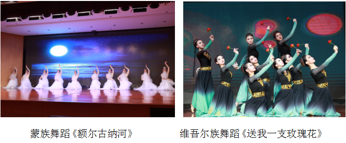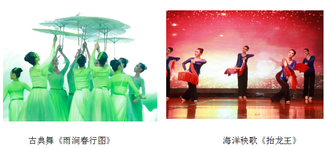 演出节目古典舞《雨涧春行图》韵味十足,仿佛看到了春雨绵绵,感受到了春天的温暖和生机;《抬龙王》让我们领略到了海洋秧歌的独特风情与独特魅力;《五滴水》是一支充满温柔与坚韧的傣族舞蹈,展现傣族女子的柔美和活力;蒙族舞蹈《额尔古纳河》仿佛看到了河流的奔腾,感受到了那河流般奔放的青春和自由。除此之外,维吾尔族舞蹈《送我一支玫瑰花》、爵士舞《Do not touch》及安徽花鼓灯《歌扇萦风》和古典舞《湘云飞》等舞蹈也都体现着舞蹈的魅力和青春的活力!