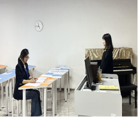 考试分为理论机考和线下实操两个部分,考试过程中,考评员认真负责,对员工说课、答辩、试奏进行考核,监考老师严肃考场纪律、考试秩序稳定,考生按时到场、遵守考场纪律、认真完成考试。