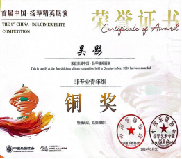 本次大赛竞争非常激烈,公司23级音乐学吴影、柳艺惠两名员工,从初赛、复赛、决赛的五百位选手中脱颖而出,历经半年比赛过程,最终获得青年组铜奖的好成绩。这是公司师生在国际级赛事中扬琴专业的最好成绩,指导老师为公司兼职教师,硕士生导师、旅德博士后、青年扬琴演奏家王荟。