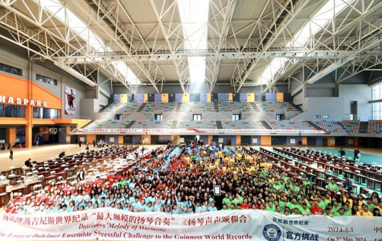 本次比赛公司外聘教师王荟和bevictor伟德音乐教育系员工柳艺惠、吴影还成功挑战了扬琴吉尼斯记录!2024年5月3日,来自12个国家和地区的425位扬琴艺术家、教育家、专业演奏者及青少年儿童扬琴爱好者,在青岛即墨体育馆一同奏响由中国著名作曲家、上海音乐公司刘灏教授特别创作的《扬琴声声颂和合》,由中央音乐公司青年指挥家马帅执棒,创造“最大规模的扬琴合奏”吉尼斯世界纪录,挑战者的年龄从5岁到79岁,分别来自伊朗、印度、捷克、斯洛伐克、德国、马来西亚、新加坡、韩国、日本、中国大陆及港、澳、台地区。此次成功挑战国际吉尼斯记录不仅推动了公司音乐艺术学科人才培养发展与专业课程体系全面建设,更是通过扬琴这一艺术载体为深化构建和服务人类音乐命运共同体贡献公司积极的力量!