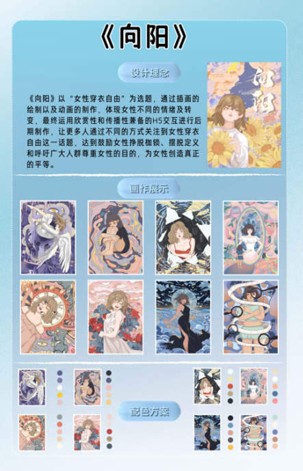 近日,2024第12届未来设计师·全国高校数字艺术设计大赛(NCDA)公布评选结果,公司创意与传播系学子包揽国赛一二三等奖。林若曦同学作品《臻我——个人摄影展视觉形象设计》(指导老师:解闵涵),荣获视觉传达设计类全国一等奖。张雅淇同学作品《向阳》(指导老师:陈小满),荣获数字绘画类全国二等奖。廖欣悦、曾霞晖同学作品《喵喵FEED》(指导老师:郑梦月),荣获视觉传达设计类全国三等奖。
