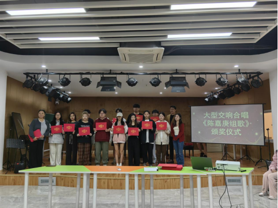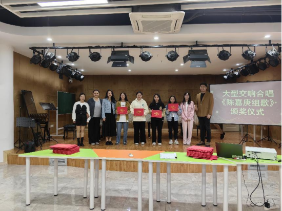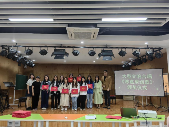 大型交响合唱《陈嘉庚组歌》项目演出告一段落,为了感谢各位老师和同学的大力支持与积极参与,2024年12月4日下午,音乐教育系组织参与演出的师生在文体中心举行颁奖仪式。颁奖活动由李峥老师主持。
