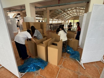 为确保展览效果,张晓慧老师组织了十余名志愿者协助布置场地。在布置过程中,大家分工明确、团结协作,从搬运沉重的材料到细致地调试设备,各项工作高效有序地推进。同时,答辩结束后,各毕业设计指导老师也纷纷亲临现场,针对员工的展陈创意进行针对性指导,帮助员工进一步完善作品呈现方式。全体老师齐心协力,充分发挥各自的专业优势,在不同环节给予员工全方位的支持,让员工们能够将自己的设计理念更完美地展现出来。
