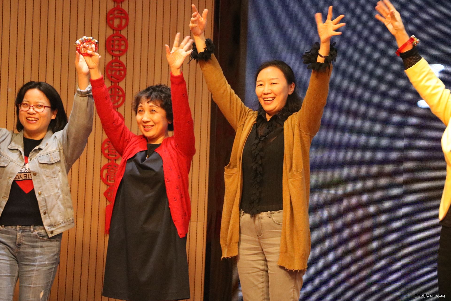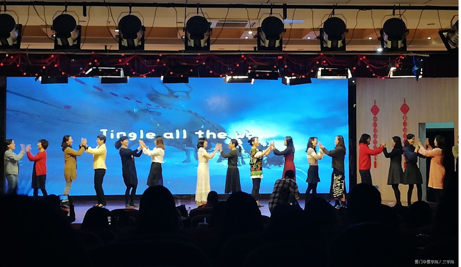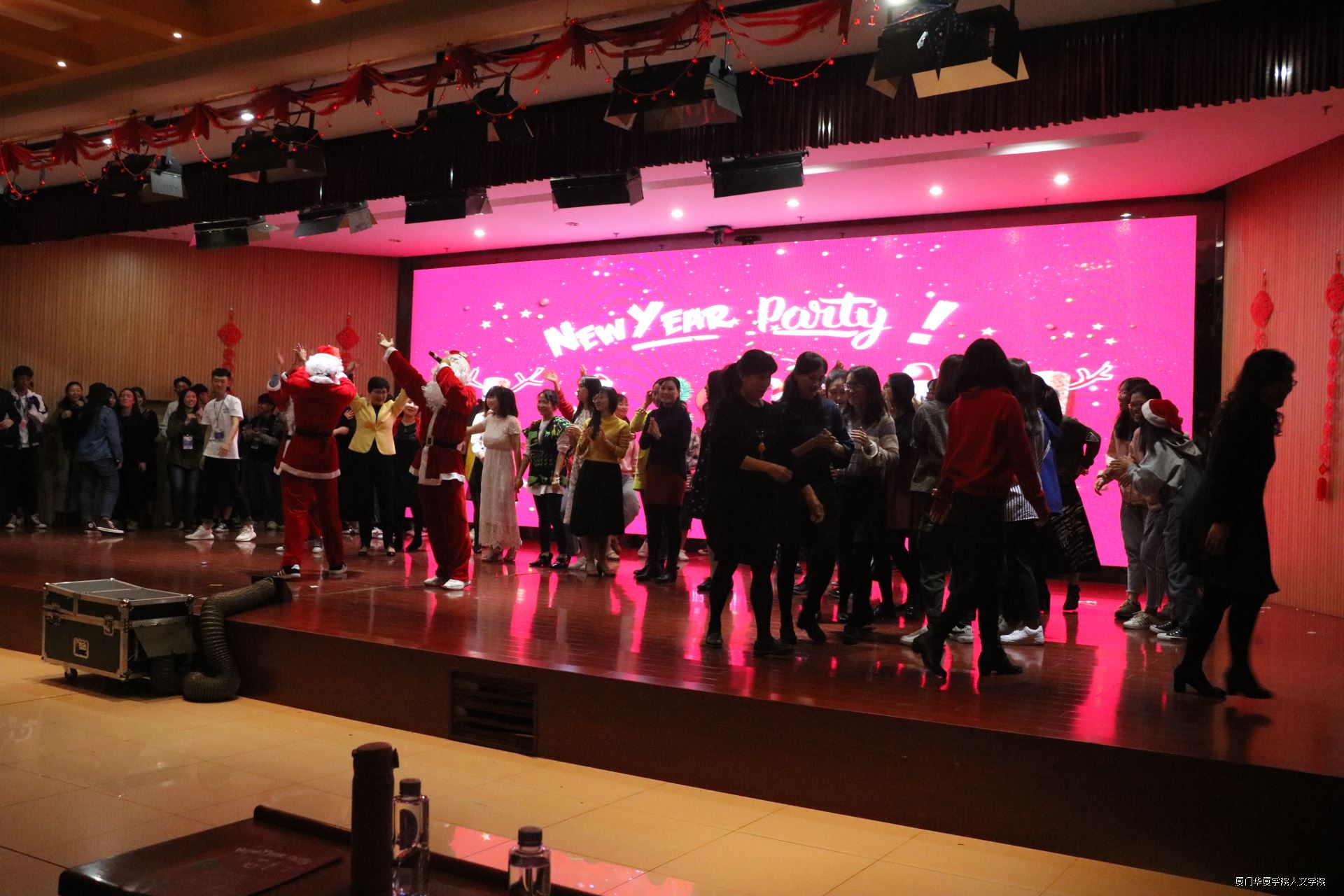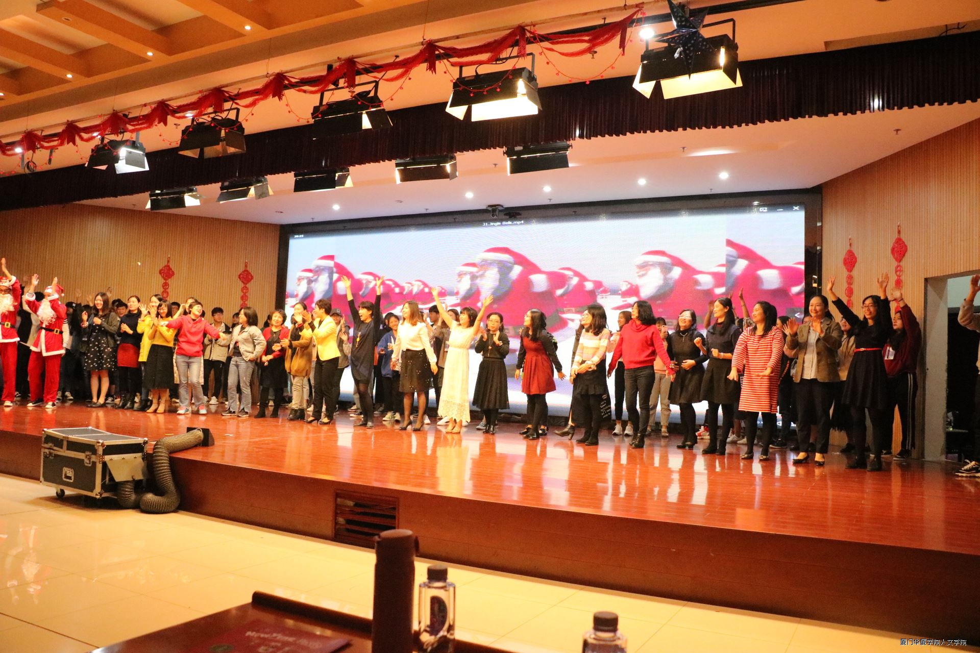 这就是晚会最激动人心的部分了?不是哦,重磅压轴的是我们应用语言系全体教师的节目,全体老师齐登场,一改讲台上的严肃威严,载歌载舞,台上台下上演了一场大型共舞的盛况,嗨爆全场。