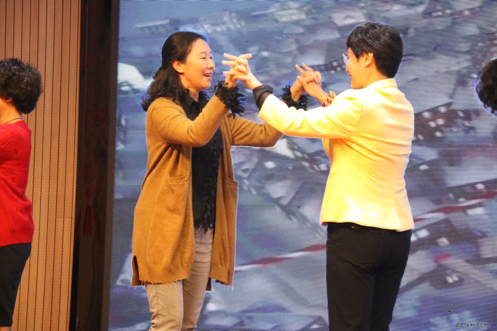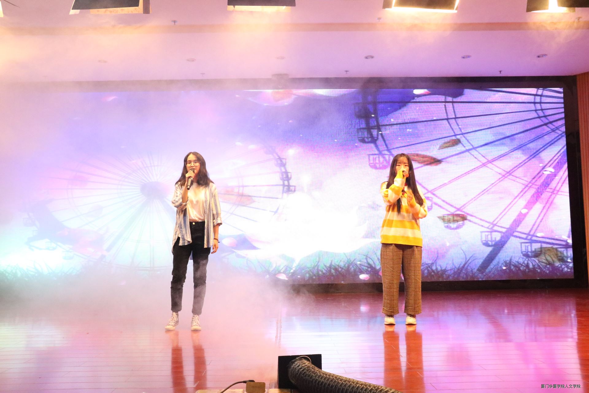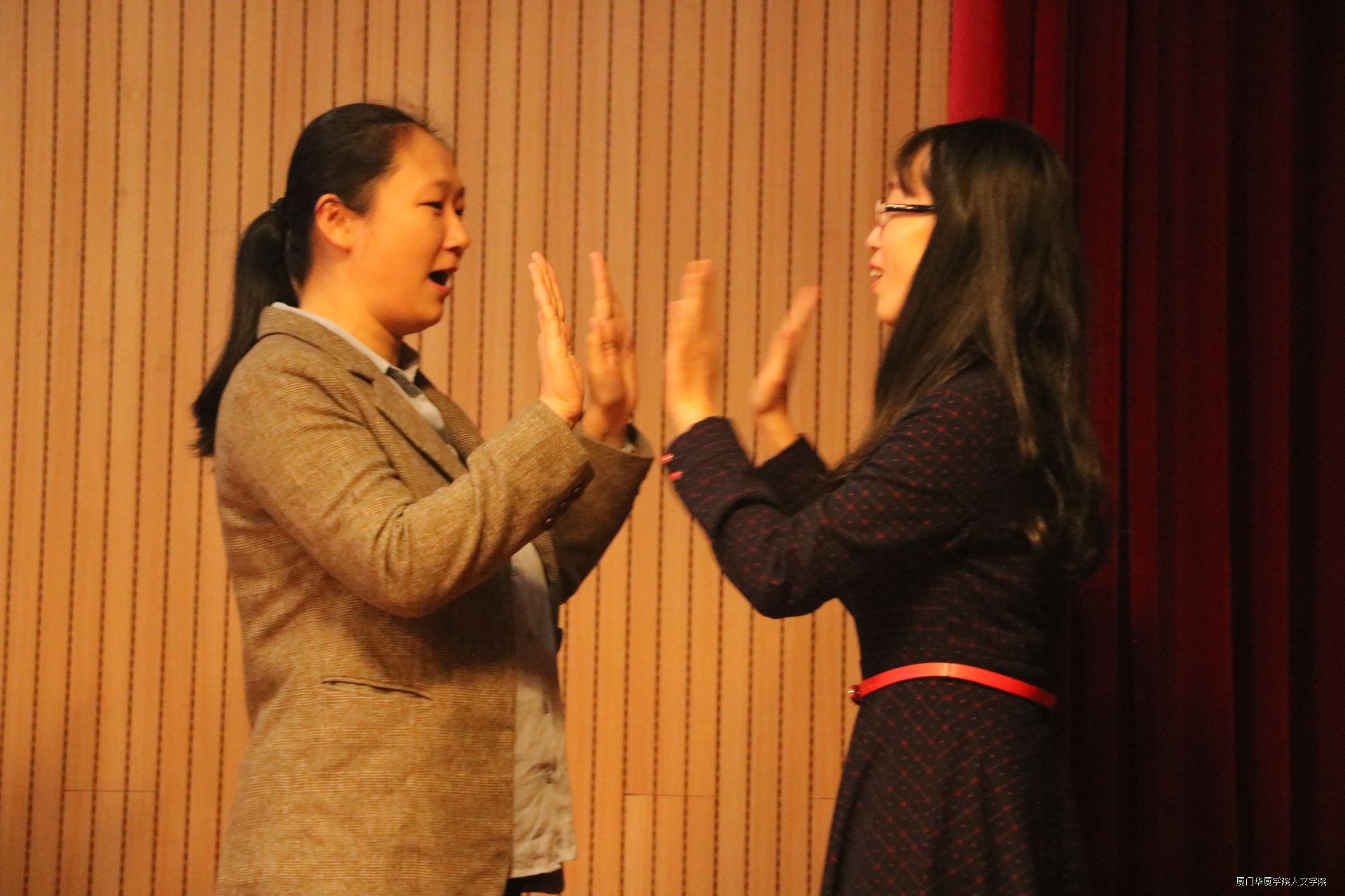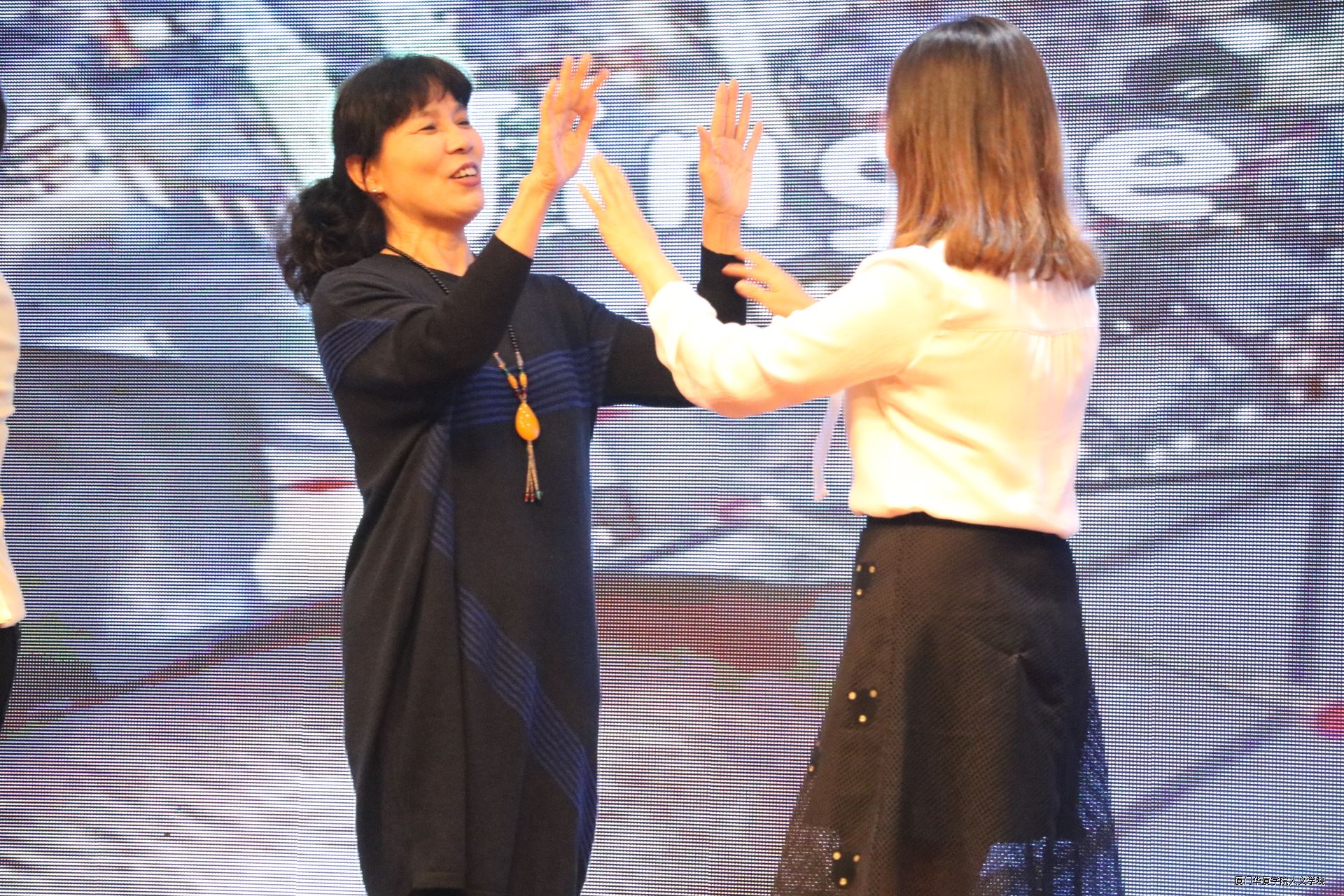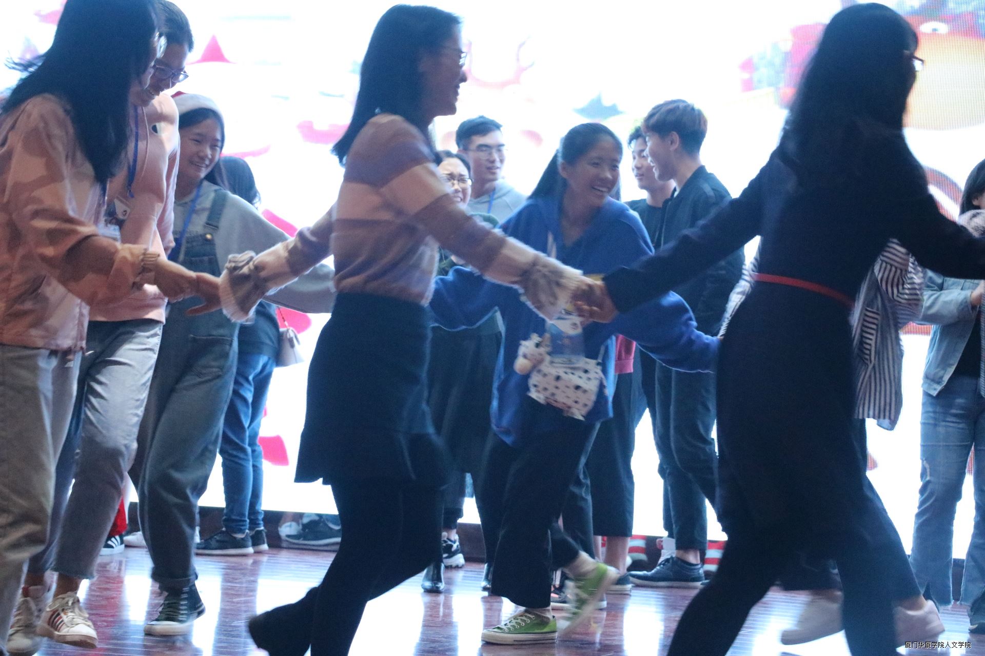 这就是晚会最激动人心的部分了?不是哦,重磅压轴的是我们应用语言系全体教师的节目,全体老师齐登场,一改讲台上的严肃威严,载歌载舞,台上台下上演了一场大型共舞的盛况,嗨爆全场。