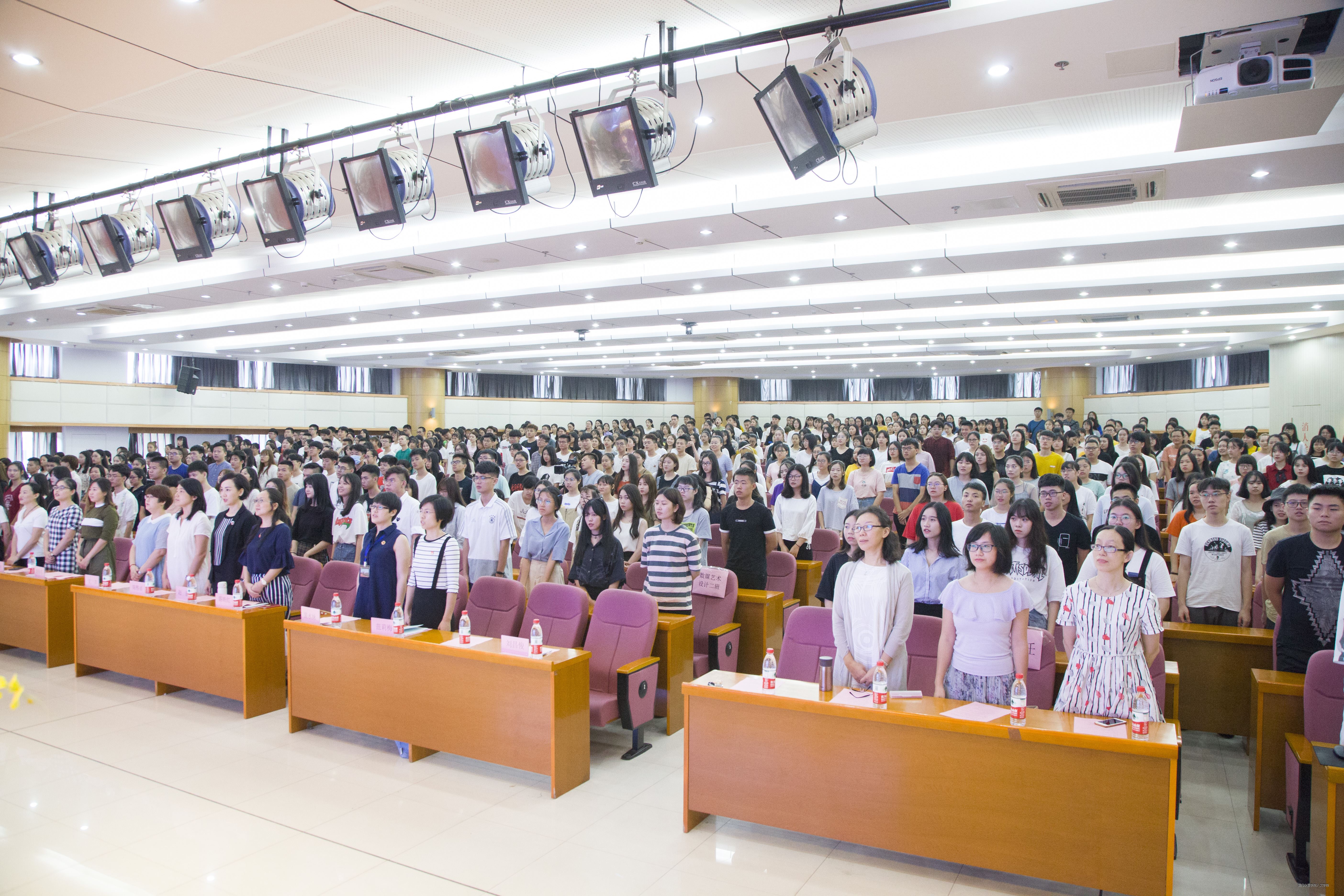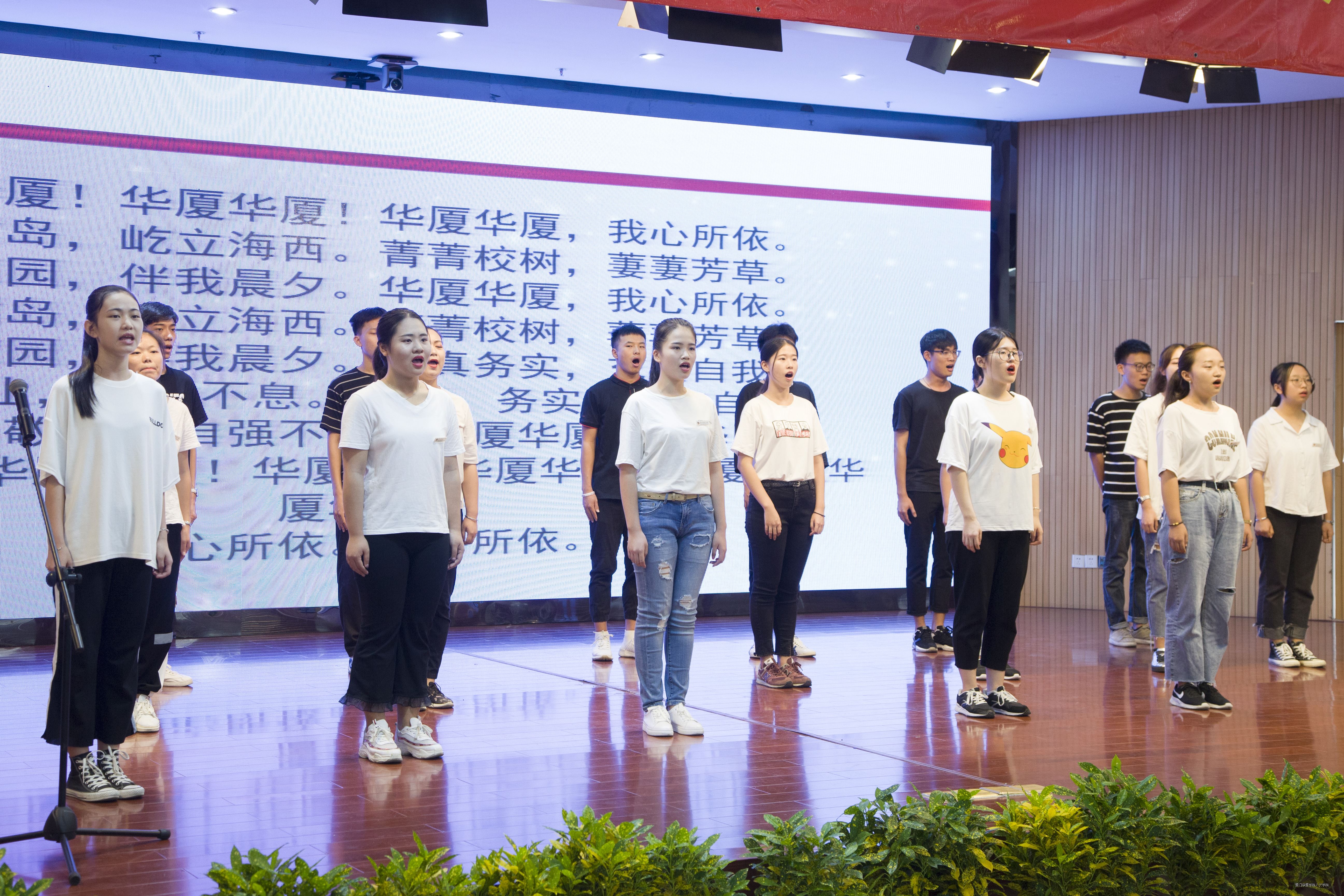(学长学姐领唱校歌《华厦、华厦、我心所依》)