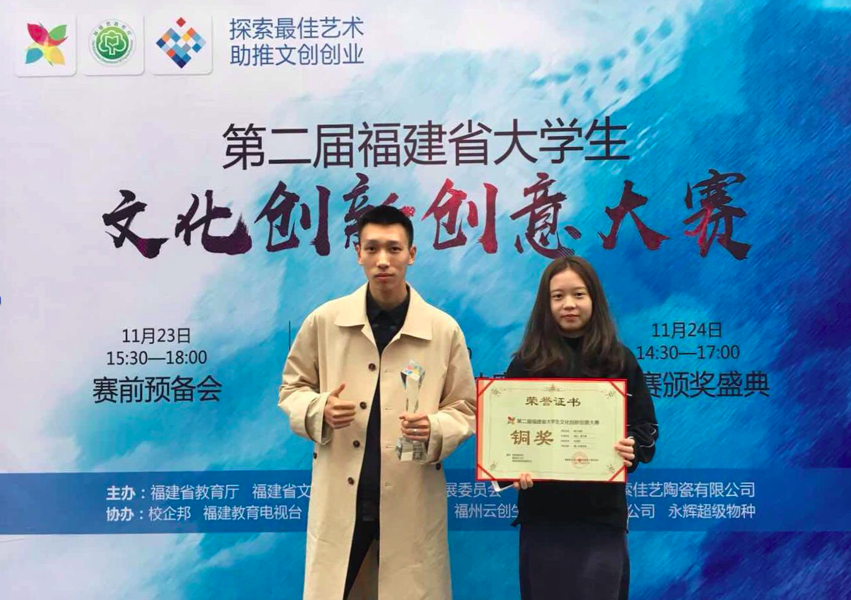 大赛由福建省教育厅联合福建省文化厅、福建省旅游发展委员会主办,福建索佳艺陶瓷有限公司承办,福州校企邦网络科技有限公司、福建教育电视台等单位协办的以“探索最佳艺术,助推文创创业”为主题的第二届福建省老员工文化创新创意大赛。第二届福建省老员工文化创新创意大赛为更好地激发老员工文化创新创意活力,提升老员工的创新精神、创业意识和创新创业能力,福建省教育厅联合福建省文化厅、福建省旅游发展委员会于2017年6月启动,参与竞赛的报名项目达13889个,通过省赛网评及专家评审,91个优秀项目晋级省级现场决赛。我系师生在这激烈的竞争中喜获佳绩,为华厦争光的同时更为同学自己创造了突破自我的机会。