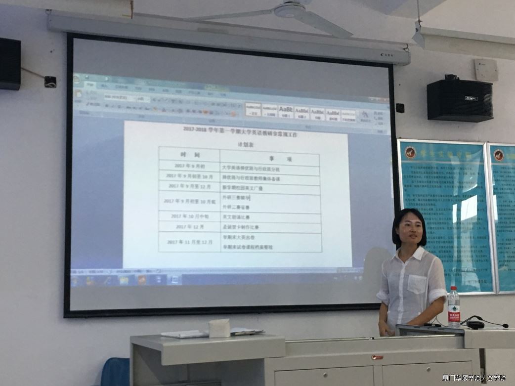 会议第三项由陈奕芳老师和林丹老师(大学英语教研室主任)分别对下学期的教学工作计划进行讲解。让系部各位老师对下学期的工作安排提前有所了解。