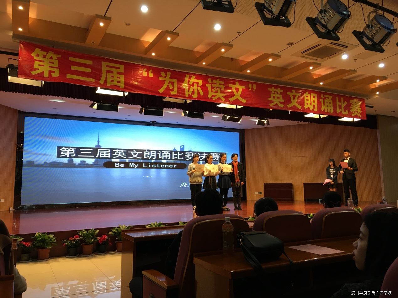 12月15日下午1:30,商务外语系第三届“Be My Listener为你读文”英文朗诵总决赛在俊秀报告厅如期举行。经过初赛的角逐,来自高职专业组、非专业组以及本科组的X组选手进入了此次决赛。与往年相比,本届比赛吸引到了更多的员工的参加,尤其是大一本科员工尤为热情,而高职和本科专业均涌现出了更多优秀的选手。参赛选手风格各异,在朗诵中加入了自己对英文朗诵的理解,赋予了诗文新的活力。