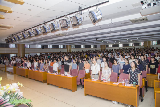 最后,在合唱《我和我的祖国》歌声中,新生代表为与会领导、教师献花,以表达对第35个教师节的节日祝福。新生开学典礼在全体师生激昂的对新中国成立70周年的深情祝福歌声中圆满落幕。