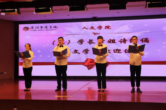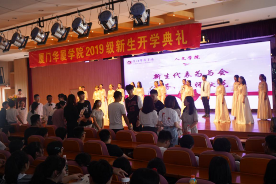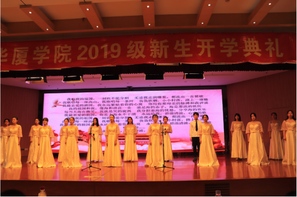 (学长学姐领唱校歌《华厦,华厦,我心所依》)